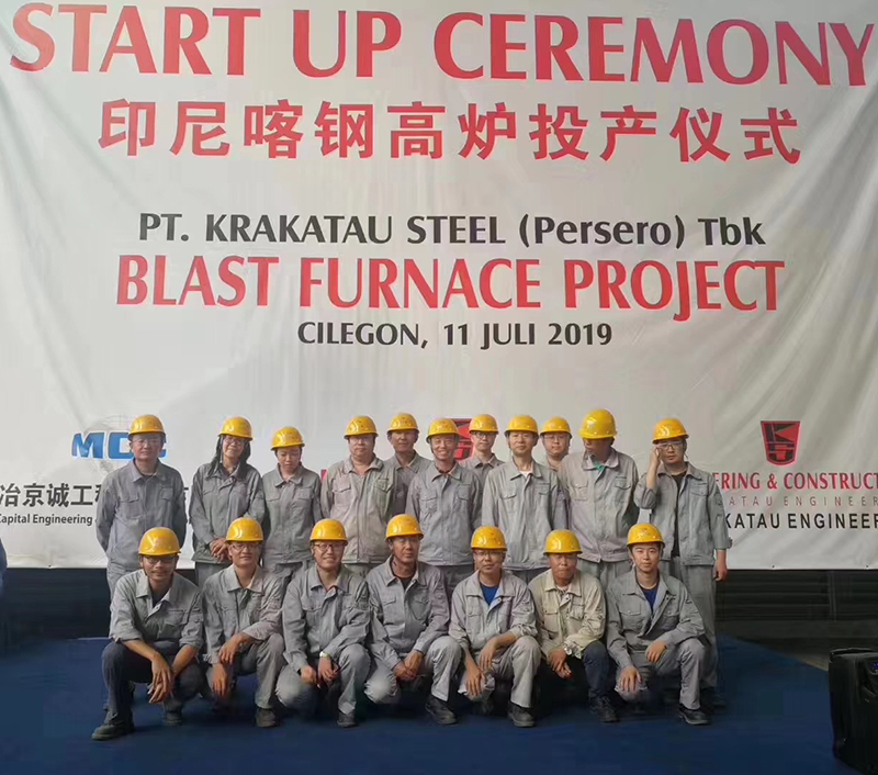 2019.07.12印尼喀鋼現場。由中冶京城工程技術有限公司承包總覽的喀鋼高爐投產成功。北京力德公司供貨的扒渣機、傾翻車、傾翻裝置,攪拌頭更換車等設備順利投產!...
